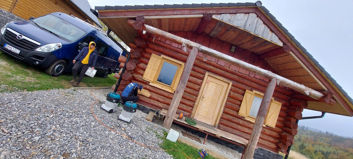 Pracovať vieme v rôznych podmienkach. Či je zima, dážď alebo extrémne horúčavy. Tento REPAS pozostával z brúsenia a leštenia. Takto sme zrenovovali 230 m2. Práca spočívala v: